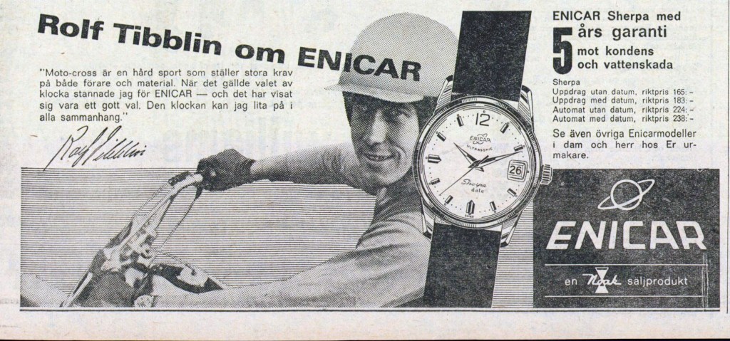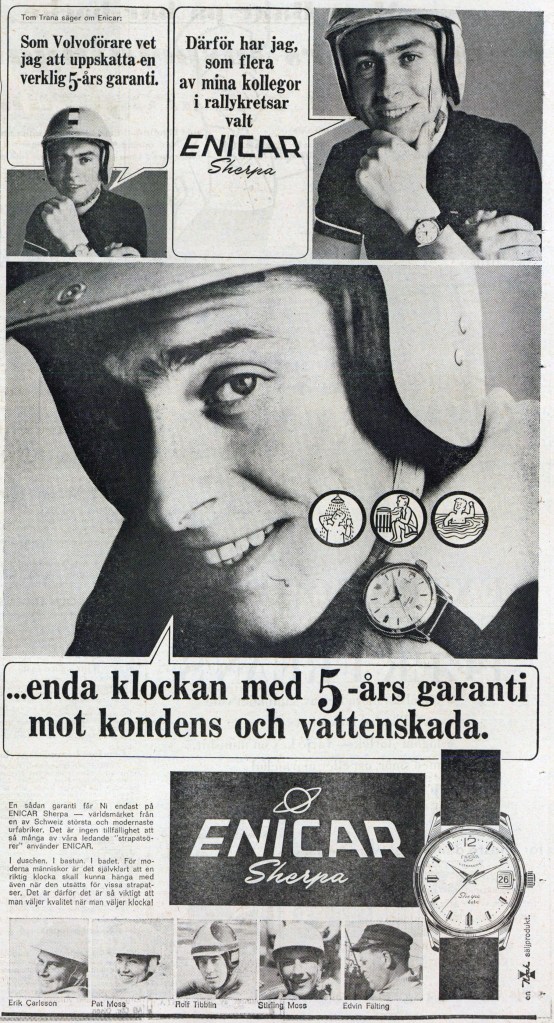 I allready wrote something in the racing section about Erik Carlsson, the famous Swedish Rallye Driver. Lately I found some more Enicar ads in a Swedish newspaper online archive, that I want to show you. It is a great example how Enicar used testemonials and buid a series of ads around them.