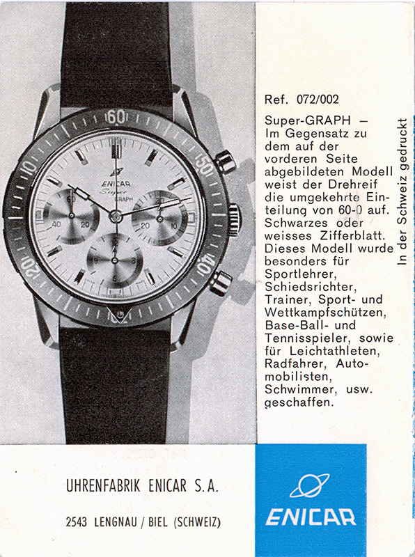 Recently a good collector friend of mine was so nice to support me with some Enicar manuals he found at his journy through the vintage watch world. Since my credo is “sharing is caring” of course I publish the small booklets I got at the “Brochures & Manual” section of this page.