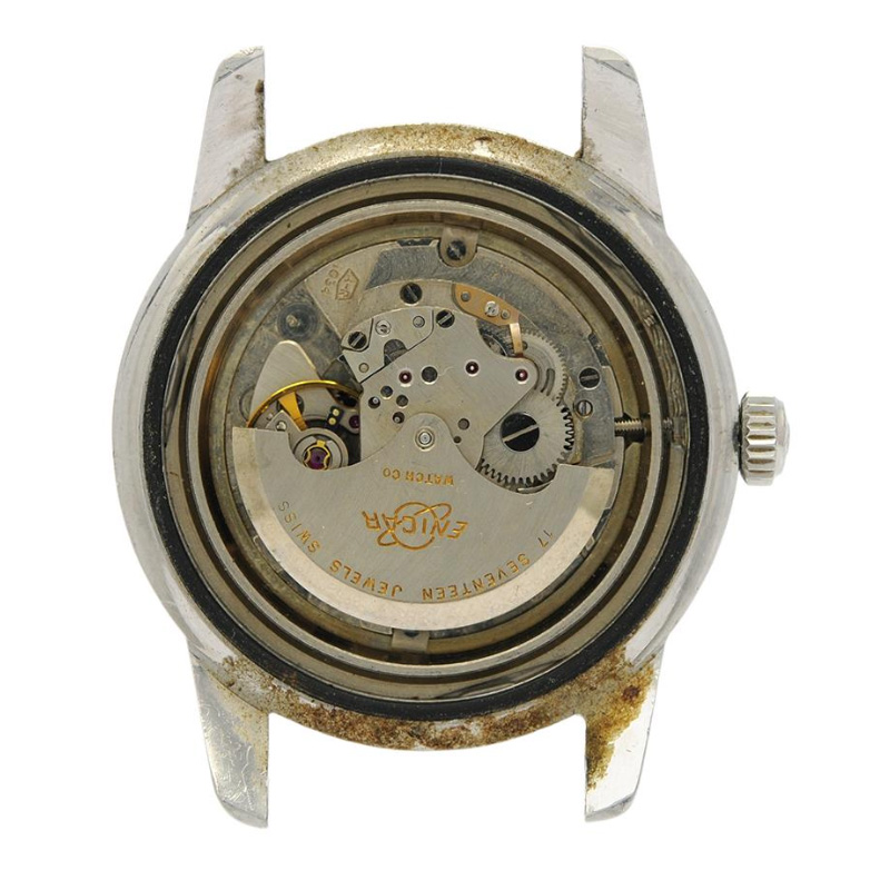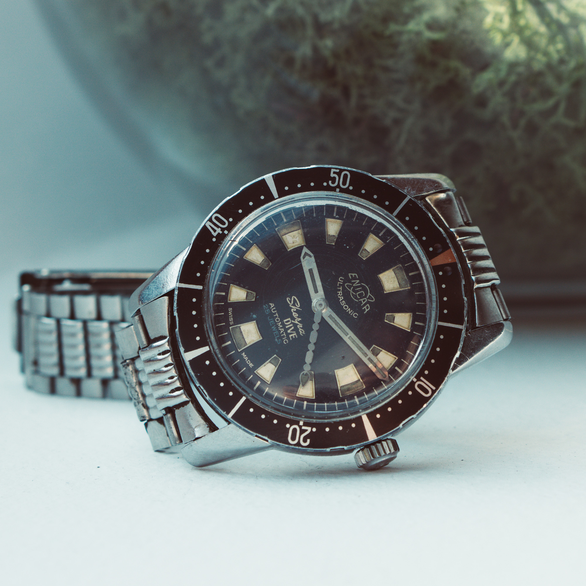 The interesting fact about the watch and him is how he got it. As much as he maybe liked the watch, he didn’t needed to buy it on his own. Enicar supported the salvation with watches and used the project for their promotion (more on that topic later). Enicar gifted this Sherpa Graph Ref. 1308 BaNCH to him, together with an Enicar Sherpa Dive. Unfortunately the Sherpa Dive was lost over time at the bench of a Swedish watchmaker, but I am pretty sure it’s similar to the Sherpa Dive model of Bo Cassel, who worked as a diver for the vasa salvage too. Bo’s watch was sold in 2015 by Kaplans (see auction description here).