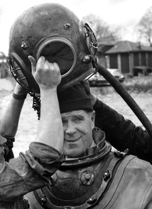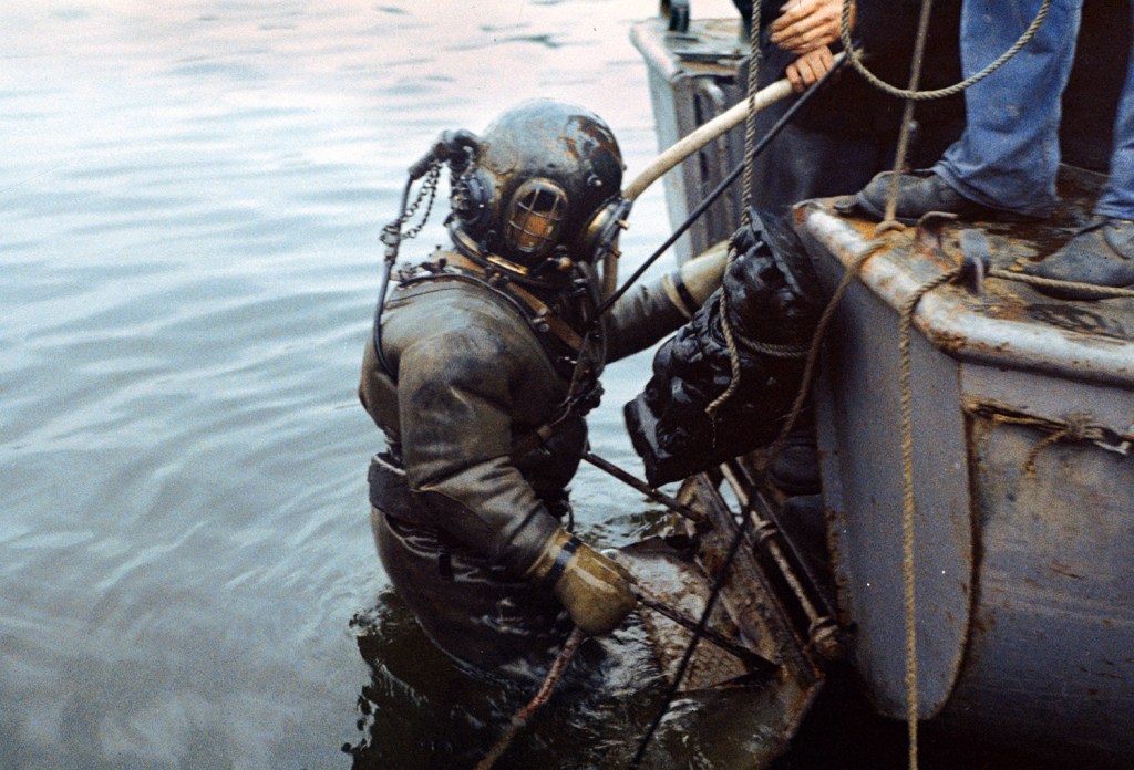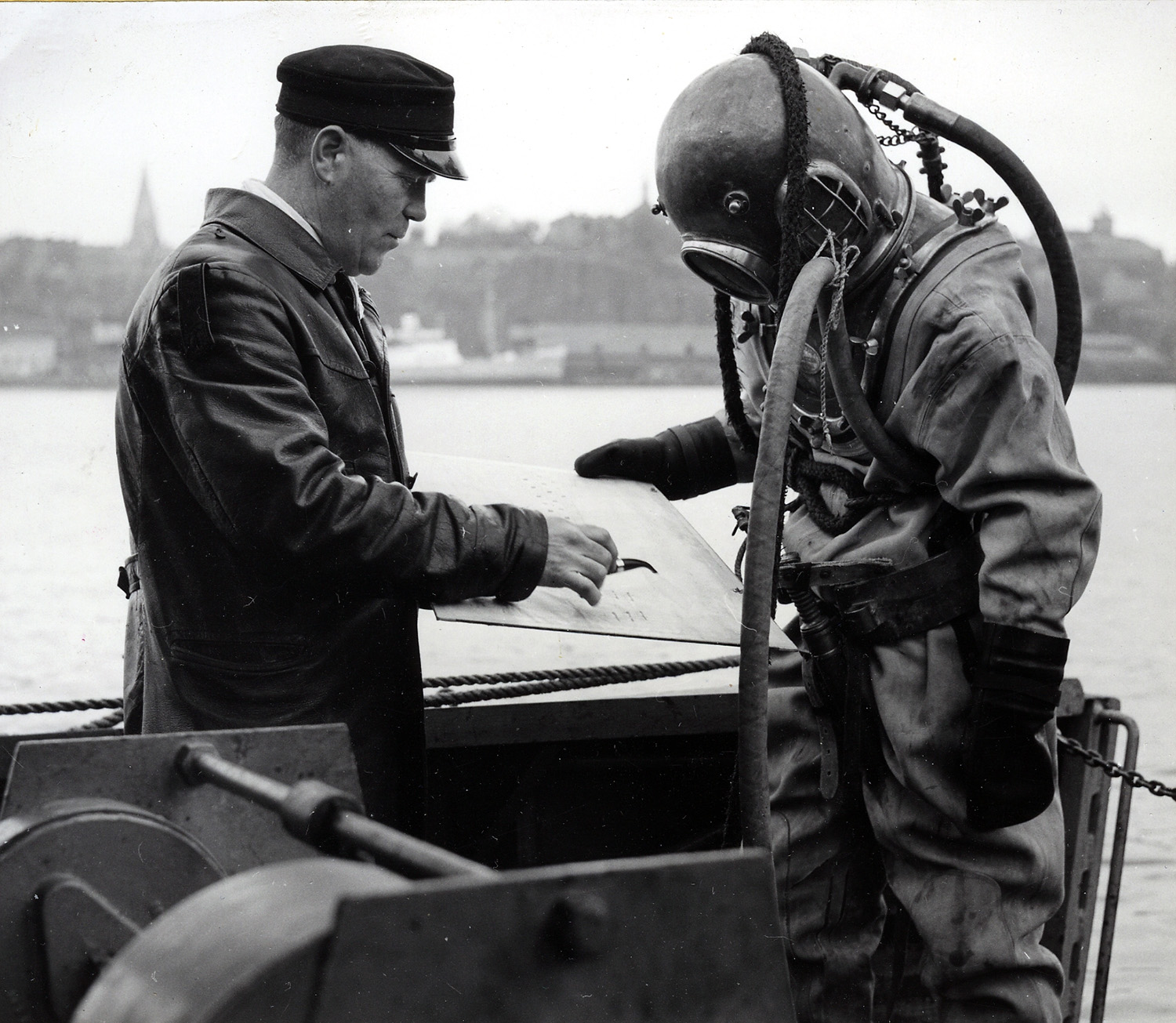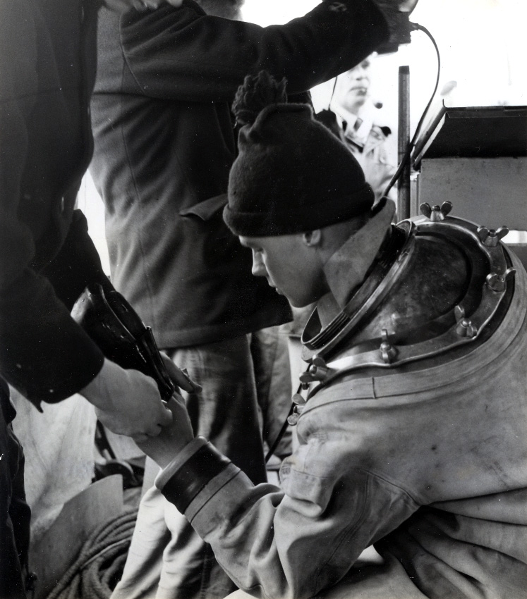Even more interesting is the fact, that when he or his collegues dived, no one had a watch on the wrist. I am not a diver, but the only explanation for me is, that they had a steady connection to the men on the ships, so a watch wasn’t necessary. In case of an emergency or loss of the connection, maybe they had a watch under the big gloves. If anyone can explain this, I would be happy to hear.