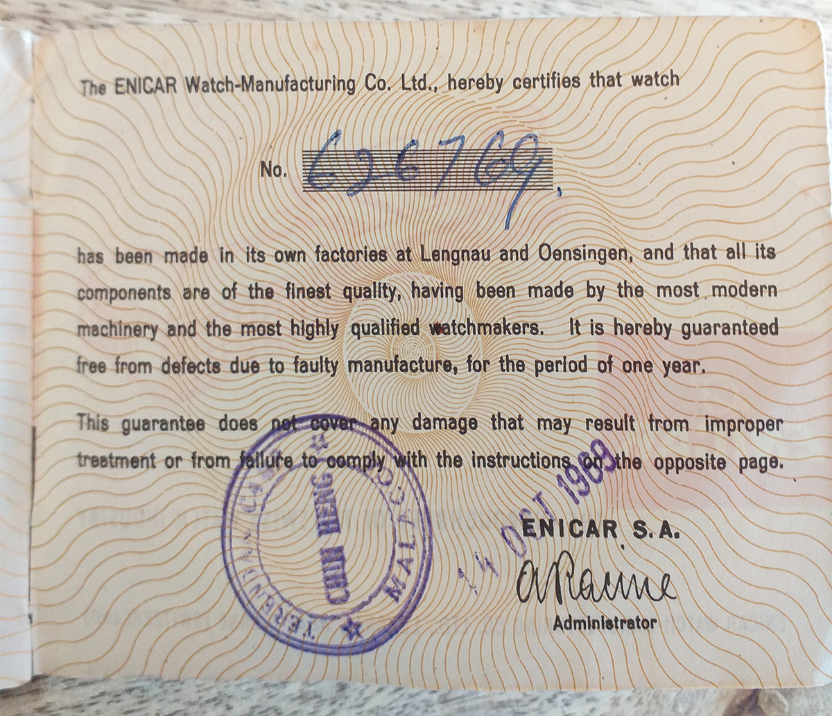 During the last year I was messaged by three guys, all involved as soldiers in Asian conflicts of the 1960s/70s. What they had in common was their watch of choice: The Enicar Jet Graph in its earliest and rarest execution (MK1a).