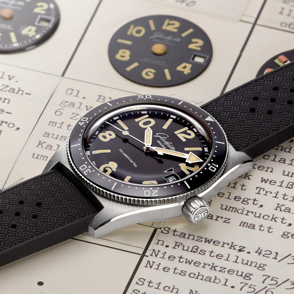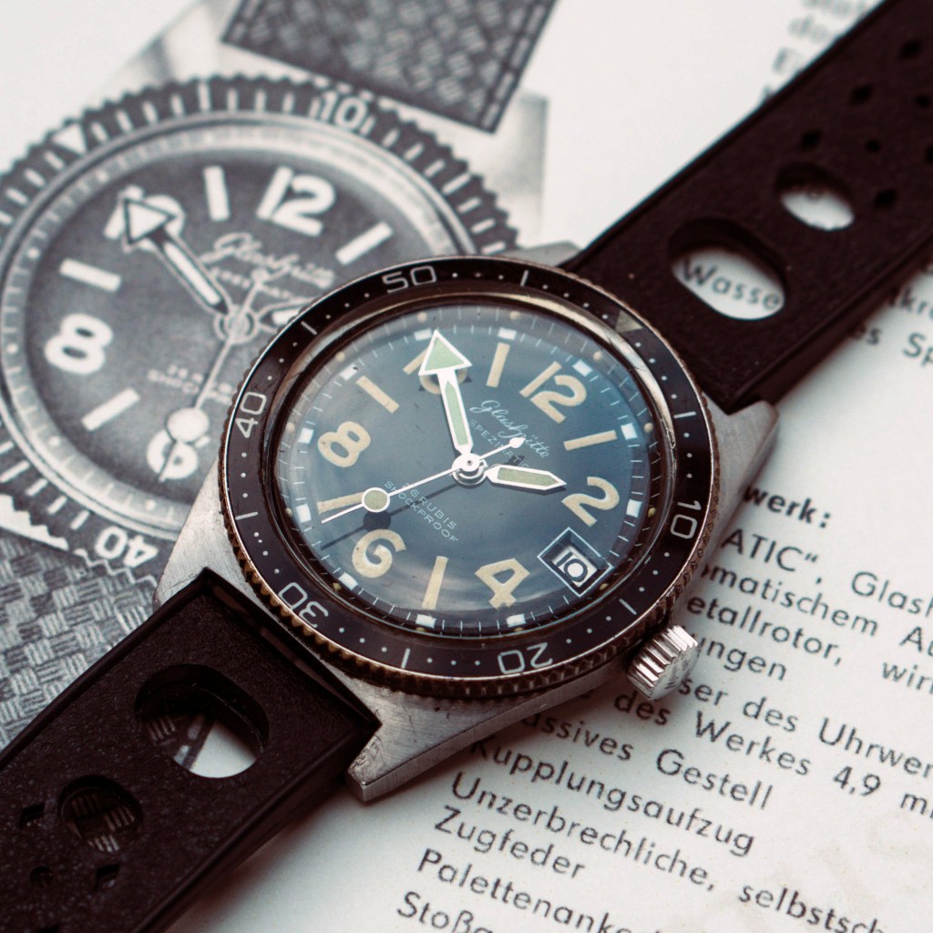 The most rare and sought after watch of this time is probably the Glashütte RP TS200 Skindiver. Equipped with the well known and a milion times build automatic calibre “Spezimatic Kal.75”, this stainless steel watch was especially made for the East-German Navy Divers (Kampftaucher). Therefore they needed to buy stainless steel cases from West-Germany, since the GDR was not able to build watertight cases back then. Crazy times. Anyway, this watch is famous today cause Glashütte Original remembered the watch and launched the modern GO SeaQ in 2019 .
