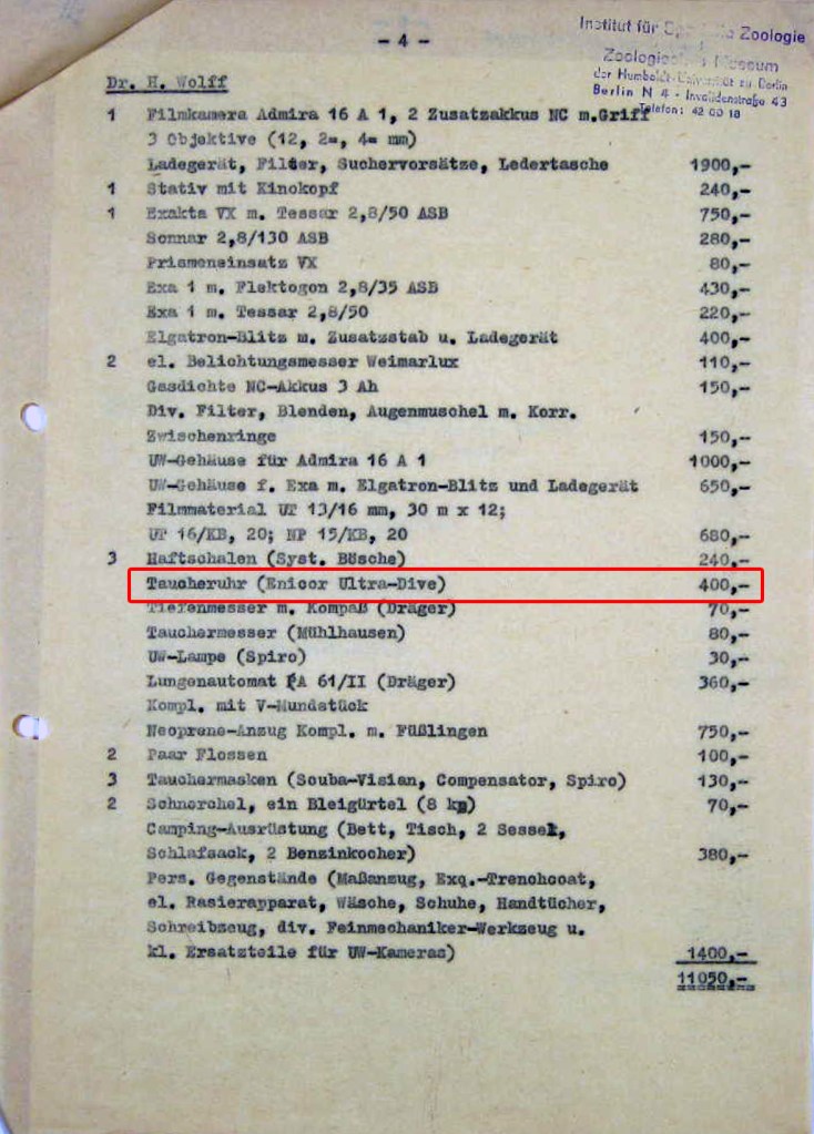 Thanks to Steven from http://www.easydive24.de I was able to ask Dr. Wolff about the Enicar. Unfortunately he couldn’t remember the watch. I guess during his travels he got more then one western dive watch and the Enicar was not as special to him as I first thought.