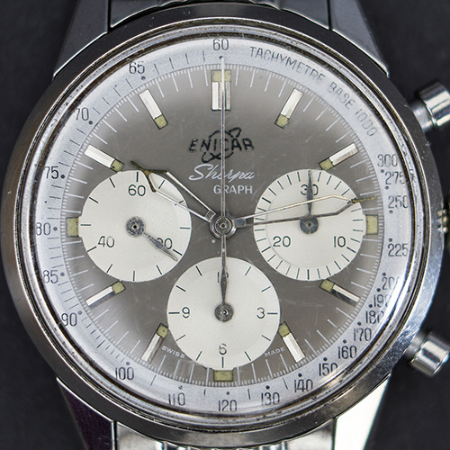 The Sherpa Graph was the origin of Enicars famous tool chronos for racing, diving and flying. They were introduced in 1960, three years earlier than any other Graph variation.